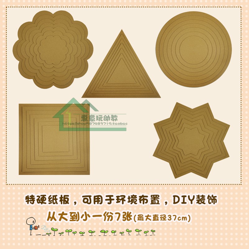 Round Set Square set triangle set seven pieces of round cardboard seven pieces of square cardboard seven pieces of triangular cardboard bottle cap egg small red flag paper tube bracket 20 pieces (excluding others) lace shape