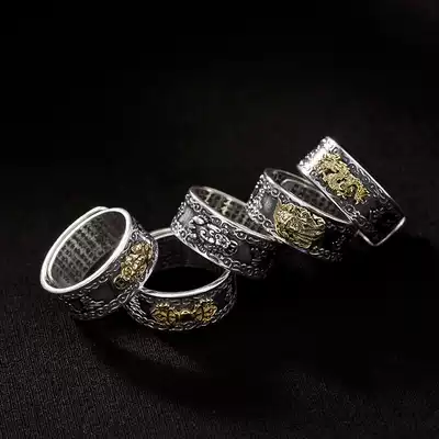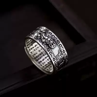 Snowflake Silver Football Silver Braille Ring Six-character Mantra Vajra Guan Gong Heart Sutra Long Sterling Silver Personality Men's Ring