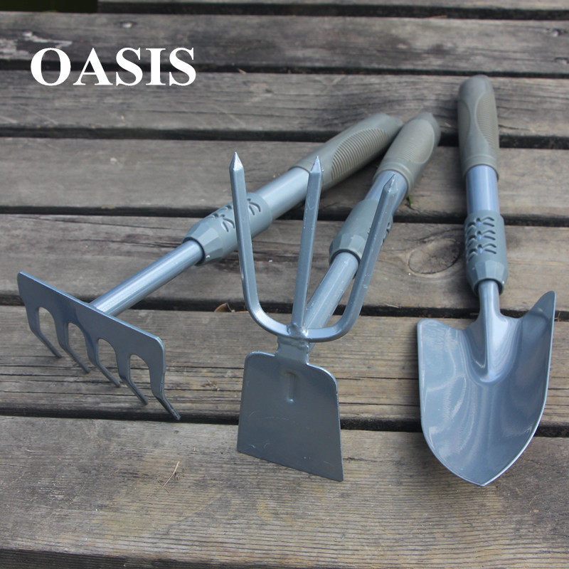 Thickened gardening three-piece set Flower shovel potted shovel hoe rake Plantation forest set Flower catch sea tool