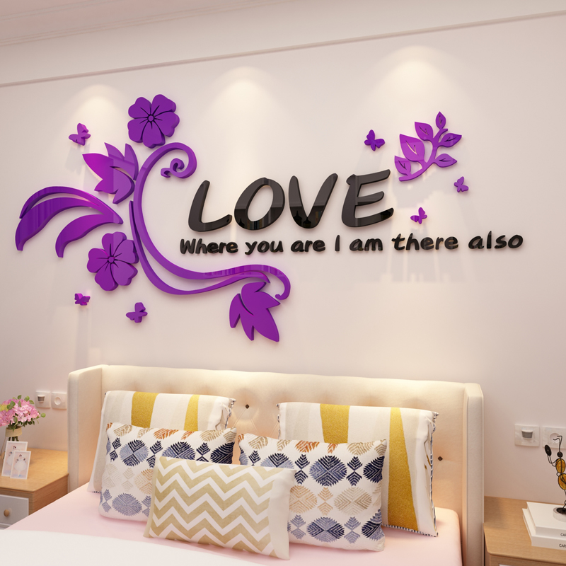Bedroom bedside decoration warm wedding room wall stickers 3d three-dimensional room layout living room wall stickers TV sofa