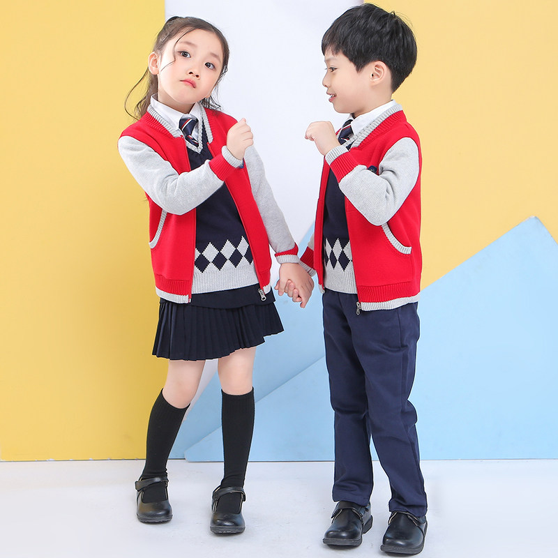 Kindergarten garden uniform spring autumn winter clothing primary school uniform cotton British style children's first grade class uniform sweater suit
