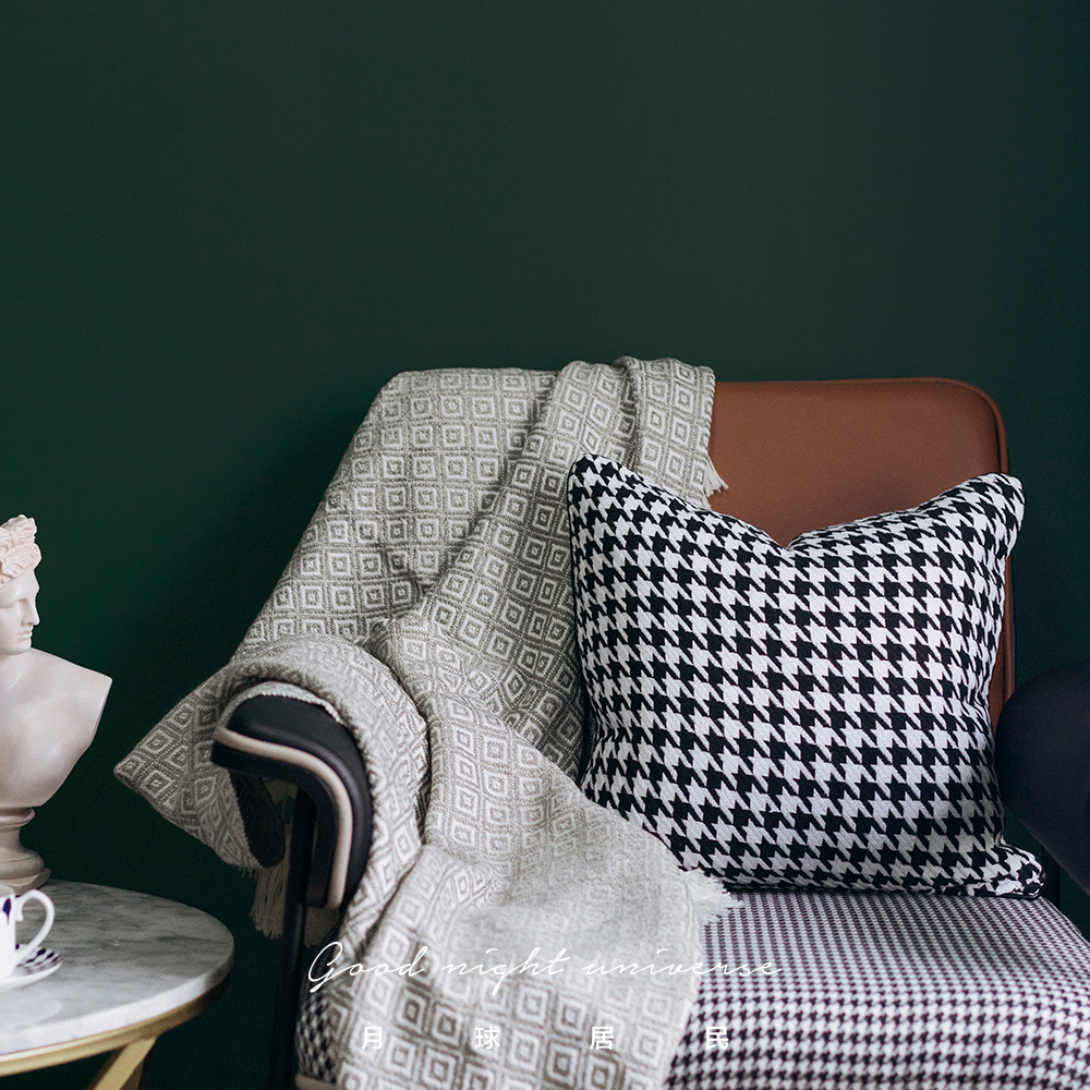 (Lunar Dwellers) Superclassic creaty sense Black and white Thousand-Bird Gpacket Edge Pillow Cover Couch Cushions Nordic Folk