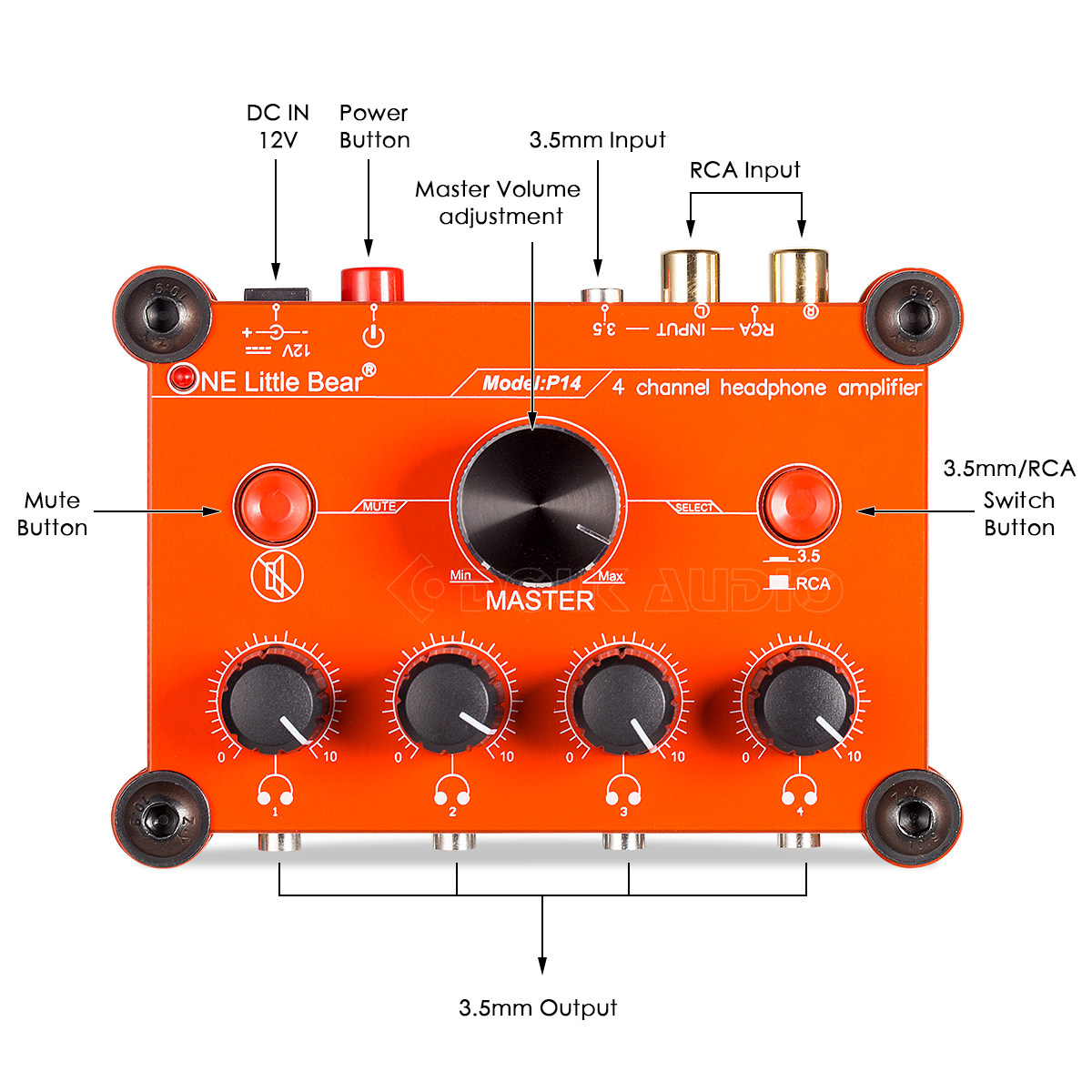 Red bear P14 four-way 4-Way Recording studio ear sub-headphone amplifier four-channel ear release distributor