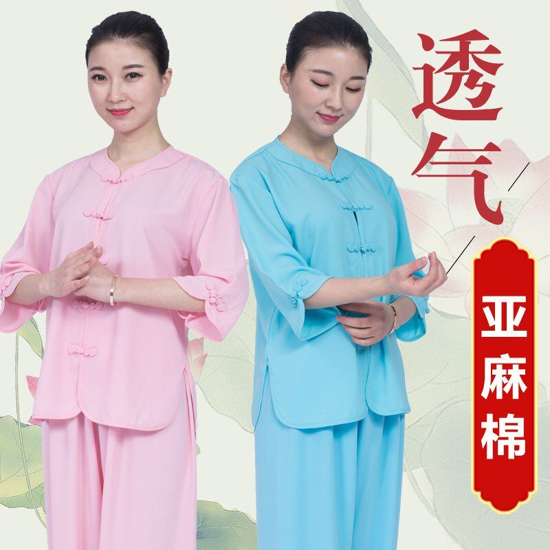 Xiaohe Mountain Taiji Clothing Women's Summer Short Sleeve Cotton Linen Linen 2020 New Elegant Taijiquan Training Clothing Thin