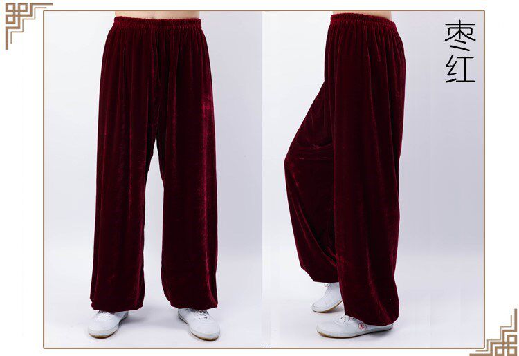 Tai Chi Pants Gold Velvet Autumn Winter Thickened Warm Taijiquan Taijiquan Costume Woman Middle Aged Light Cage Pants Morning Practice Pants Men