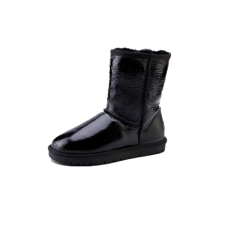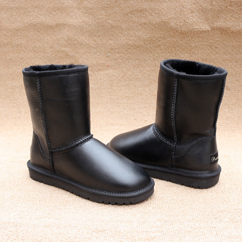 Sheepskin and fur snow boots men's mid-tube waterproof and non-slip genuine leather winter warm pure wool high-top cotton shoes large size