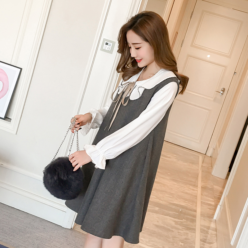 Maternity dress spring and autumn loose top wool sundress two-piece set 2021 new fashion large size spicy mom dress