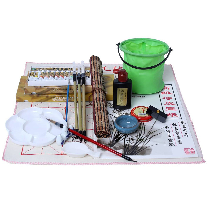 Chinese Painting Tools Suit 24 colors National painting Paint Elementary School Students Beginners 12 Colors Country Painting Materials Toolbox Utensils Ink Painting Brush Pen Tool full set of children plotters 18 color suit