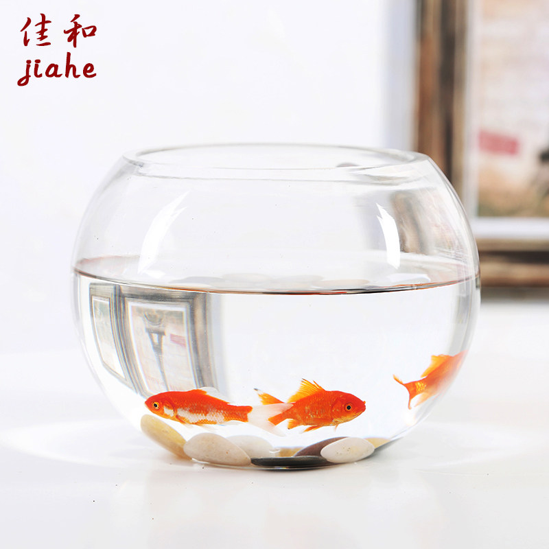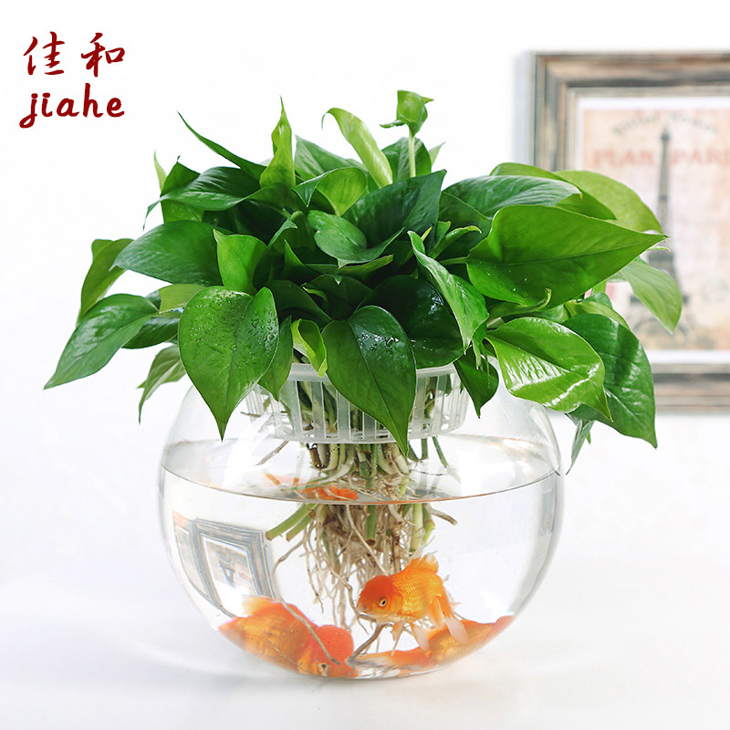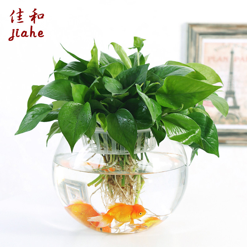 Large glass hydroponic plant pot office desktop water green grass vase round transparent fish tank