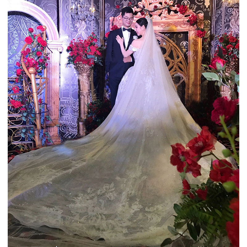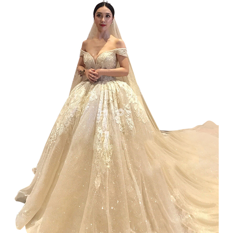 Starry Sky Light Main Wedding Dress 2021 New Dress Bride Big Trailing with Shoulder Extravagant little Subpalace Winds Winter