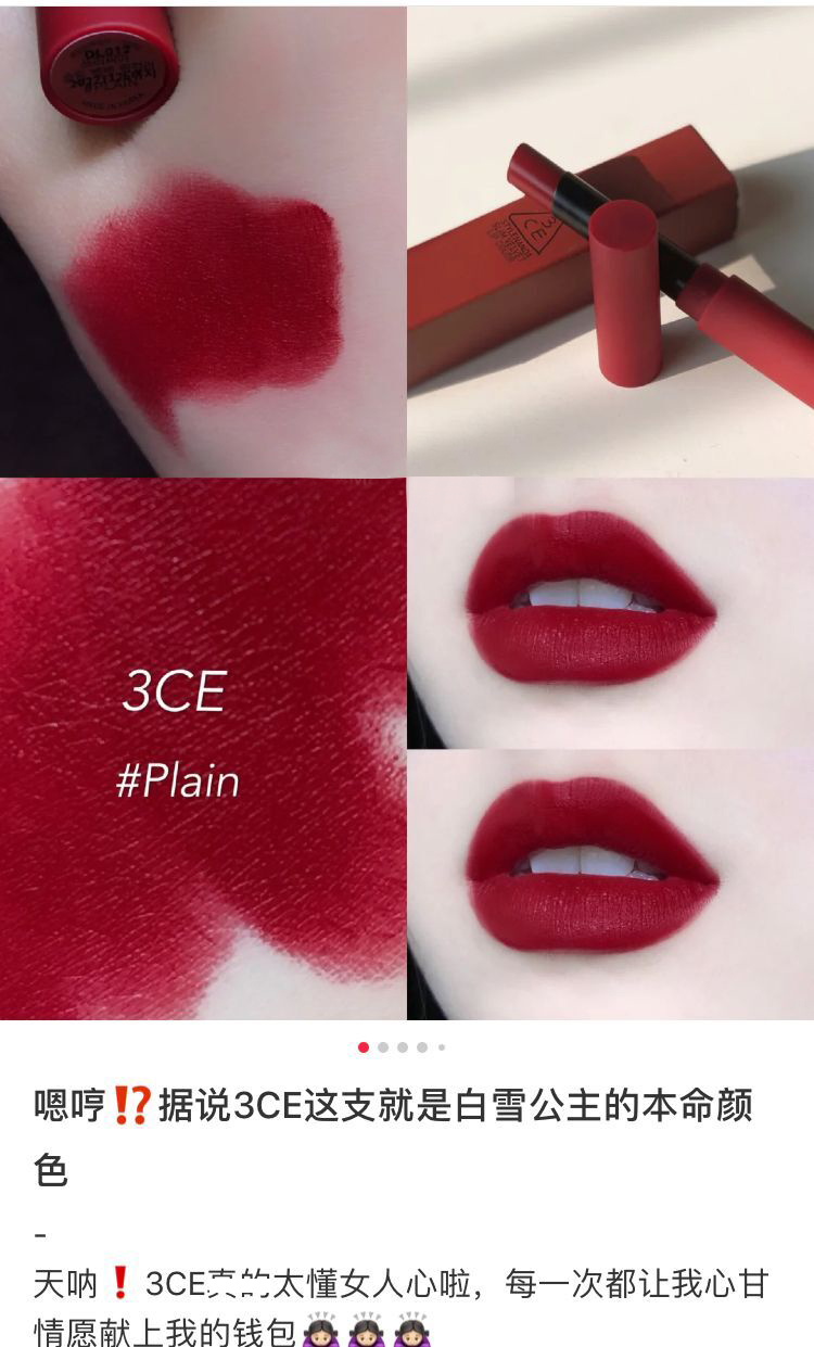 3CE smoke tube tube lipstick lipstick matte velvet rose bean paste black tea latte blood orange brick red spot