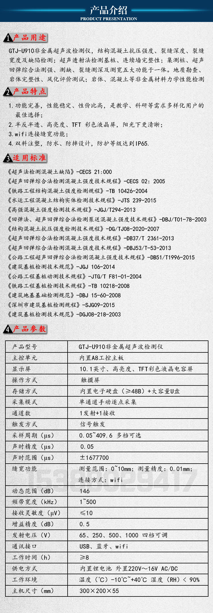 GTJ-U910 non-metallic ultrasonic detector mixed-earth compressive strength crack depth detector