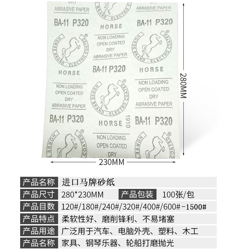 Marred sandpaper 120 mesh (100 sheets of price) Horse Sand Paper 180 Mesh (100 Sheets Price) Horse Sand Paper 240 Mesh (100 Tenor Price) Matt Sandpaper 320 Mesh (100 Sheets Price)
