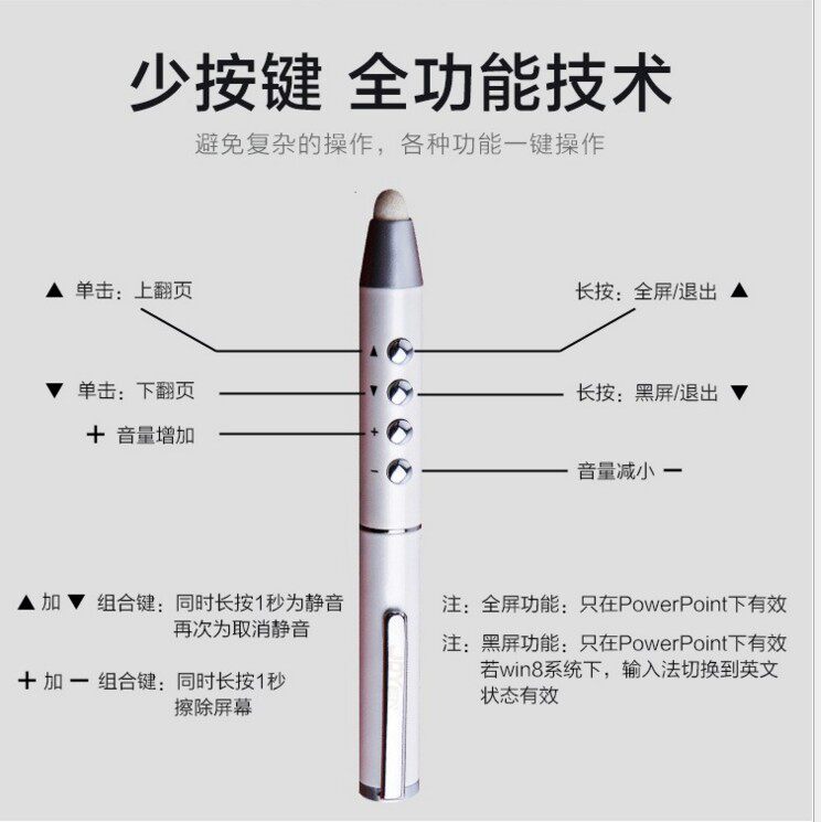 Shiwo page pens electronic whiteboard pen LCD screen all-in-one machine touch screen pen Honghe wireless stylus ppt remote control pen writing lecture turning page Red and external screen projection pen teachers use multi-function