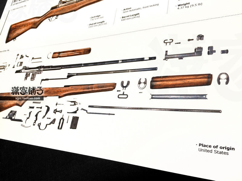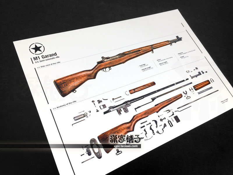 American US US Army M1 Garand Garand semi-automatic rifle structure map (collection) poster decoration painting
