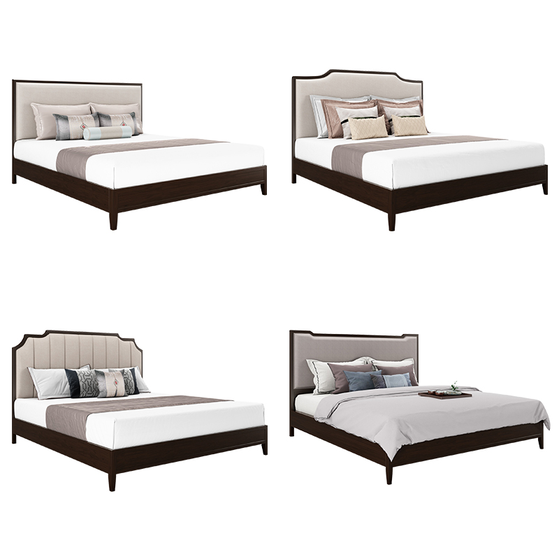 New Chinese Style Solid Wood Fabric Bed Light Luxury Modern Master Bedroom Double Bed Hotel Club Room Model Room Bedroom Furniture