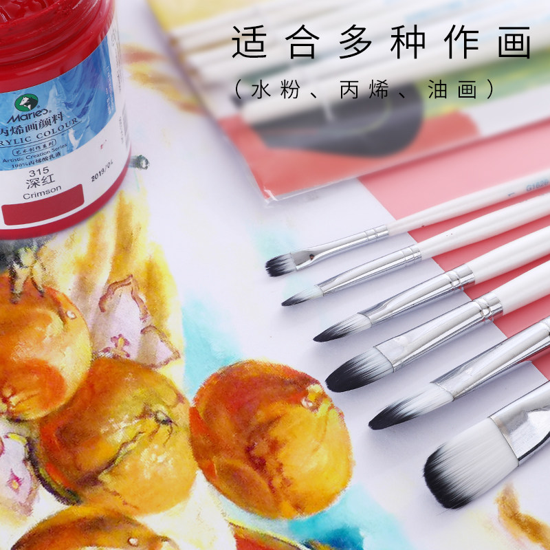 Mali Propylene Water Color Pen Flat Peak Round Peak Nylon Paintbrush 6 Sets Beginners Row Pens Brush Professional Fine Art Oil Painting Brush Students Painting Pen Cap Group Painting Adults With Watercolor Paint