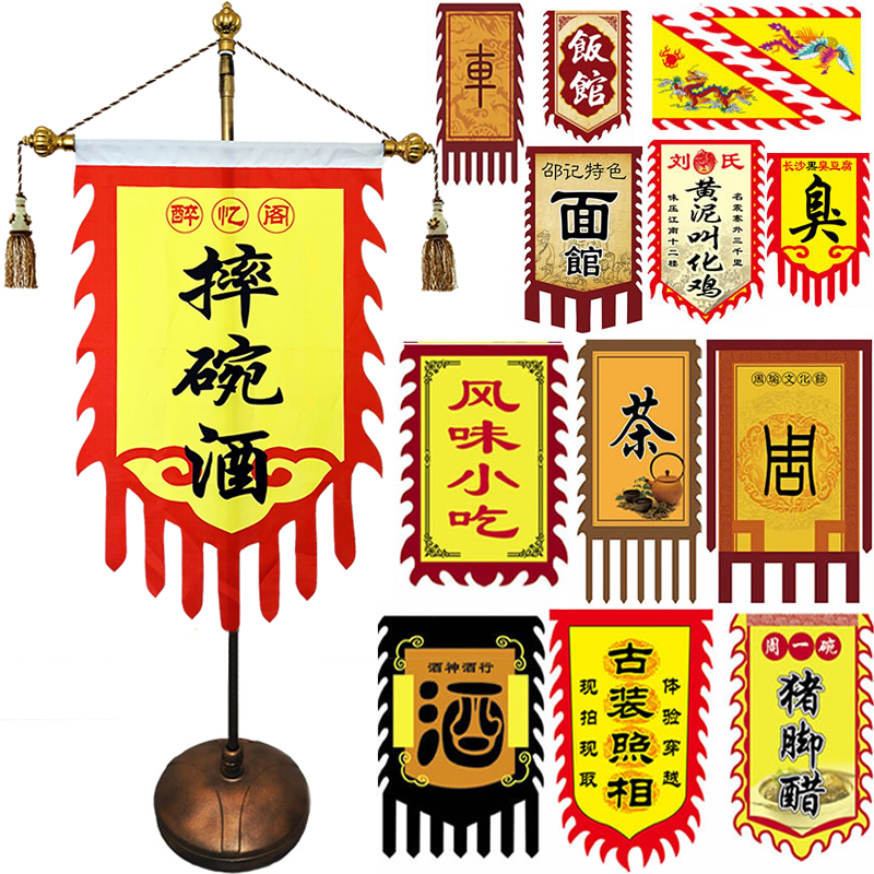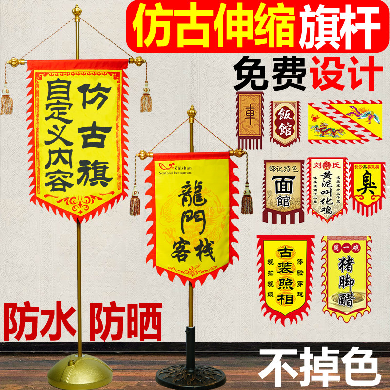 Customized antique flagpole 1.6-3.5 meters retractable cross retro advertising custom signature dragon wolf tooth battle flag