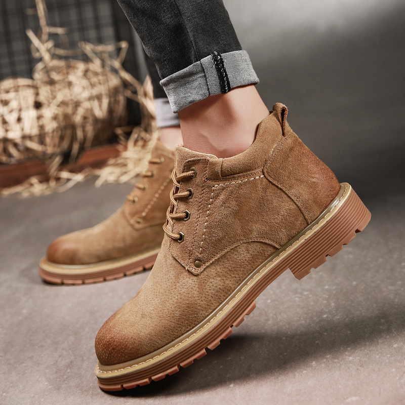 Boomer Men Shoes 2022 Fall New Martin Boots Male Korean version trendy high cylinder 100 lap Inn Leisure genuine leather short boots