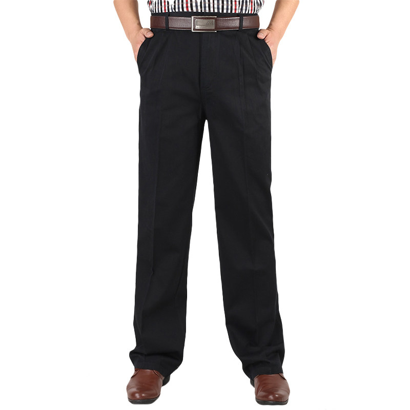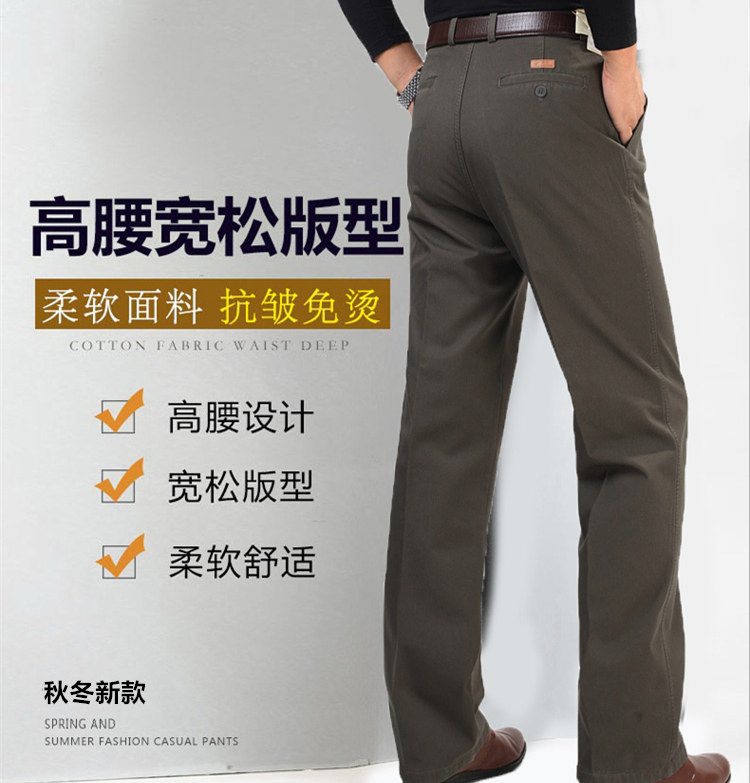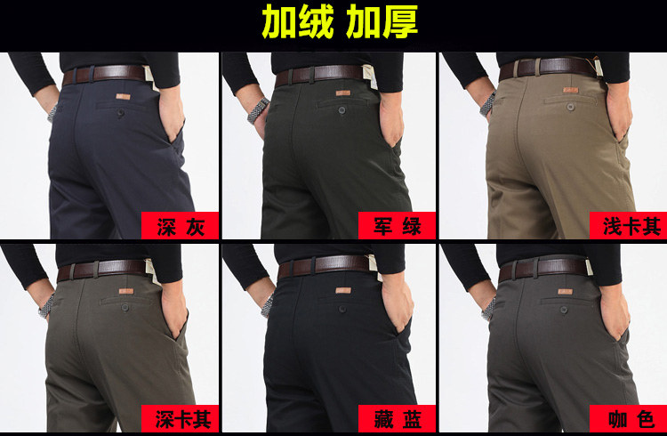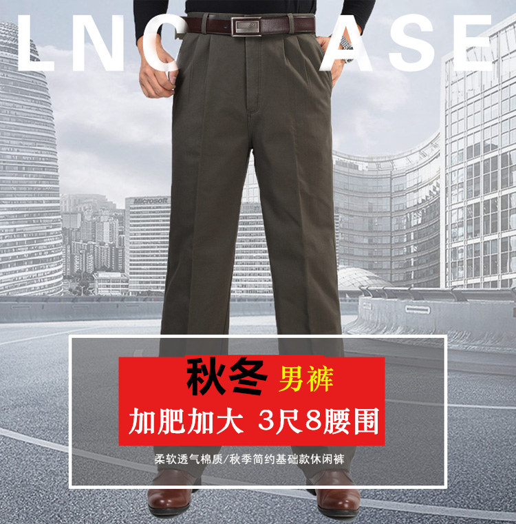 Men's pure cotton casual pants autumn and winter plus velvet thick section business men's clothing plus fat plus loose high waist deep grade men's pants