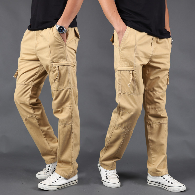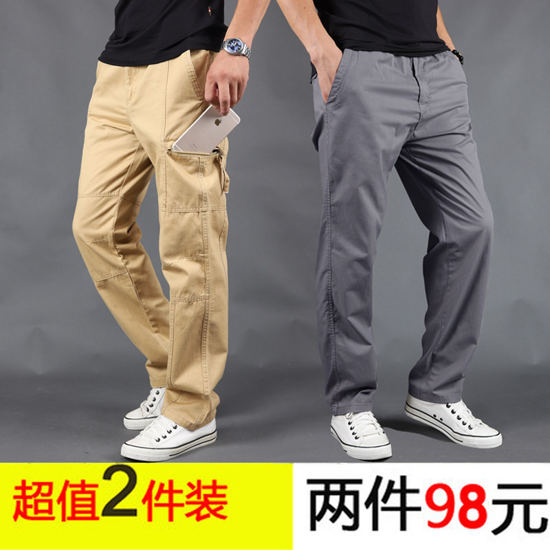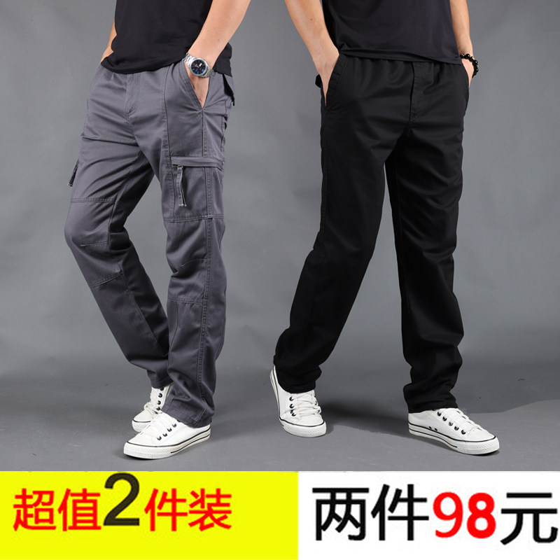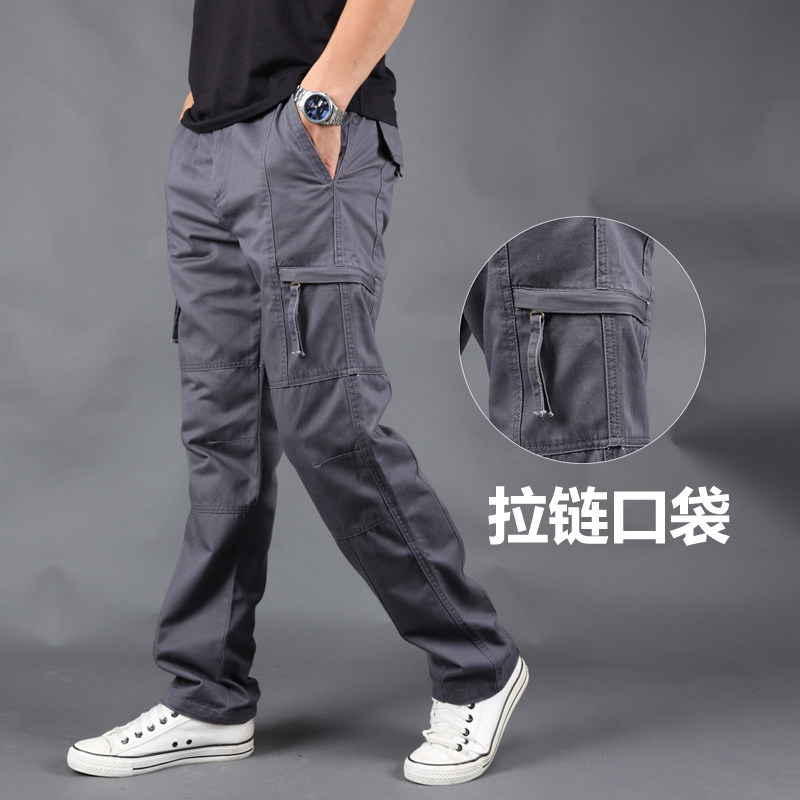 Autumn and winter all-match cotton youth large size men's multi-pocket overalls men's loose straight casual sports trousers trend