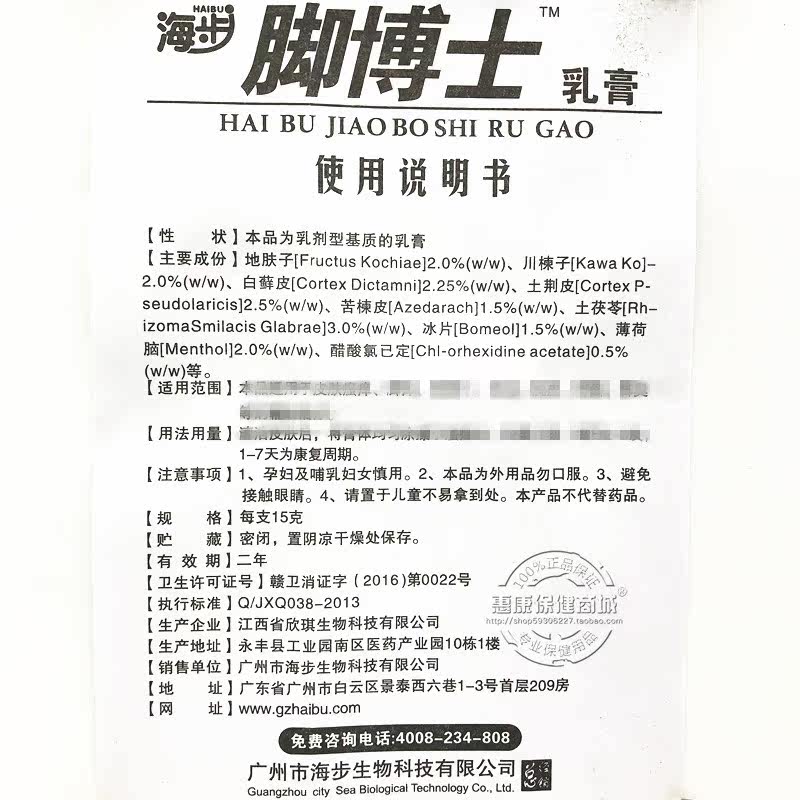 Dr. Haibu foot cream 15g Guangzhou Haibu anti-itch antibacterial ointment wet itching and rash removal prickly heat