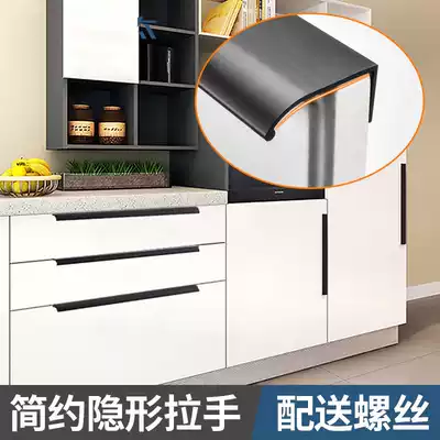 Black silver invisible integral cabinet door dark handle Modern simple extended edge banding handle punch-free integral cabinet door handrail