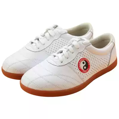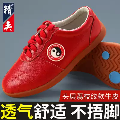 Tai chi shoes women's beef tendon bottom martial arts shoes men's leather plus velvet breathable Taijiquan practice shoes sports shoes spring and summer Jingyi