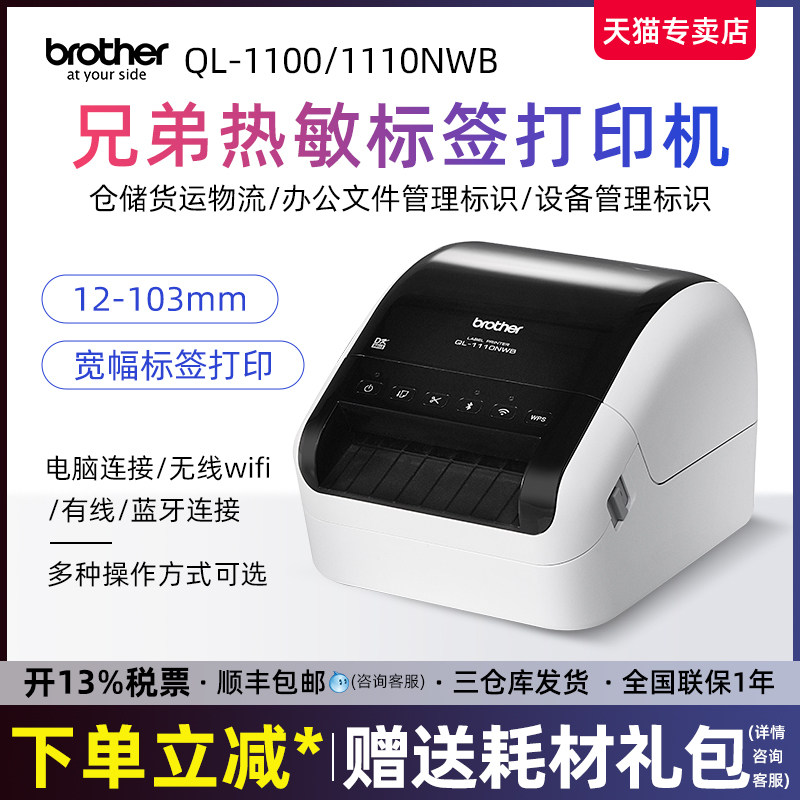 Brother Mark Machine QL-1110NWB Adhesive Hot Sensitive Paper Logistics Freight Address Medical Test Tube Infusion Bag Retail Price Guest File Wireless Wifi Barcode Printer QL-1100