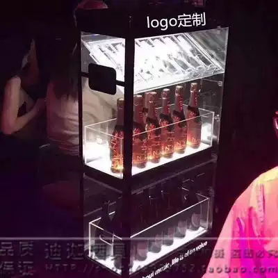 Bar new stainless steel four-story night KTV hotel glowing beveled glass Champagne wine rack foreign VIP wine cabinet