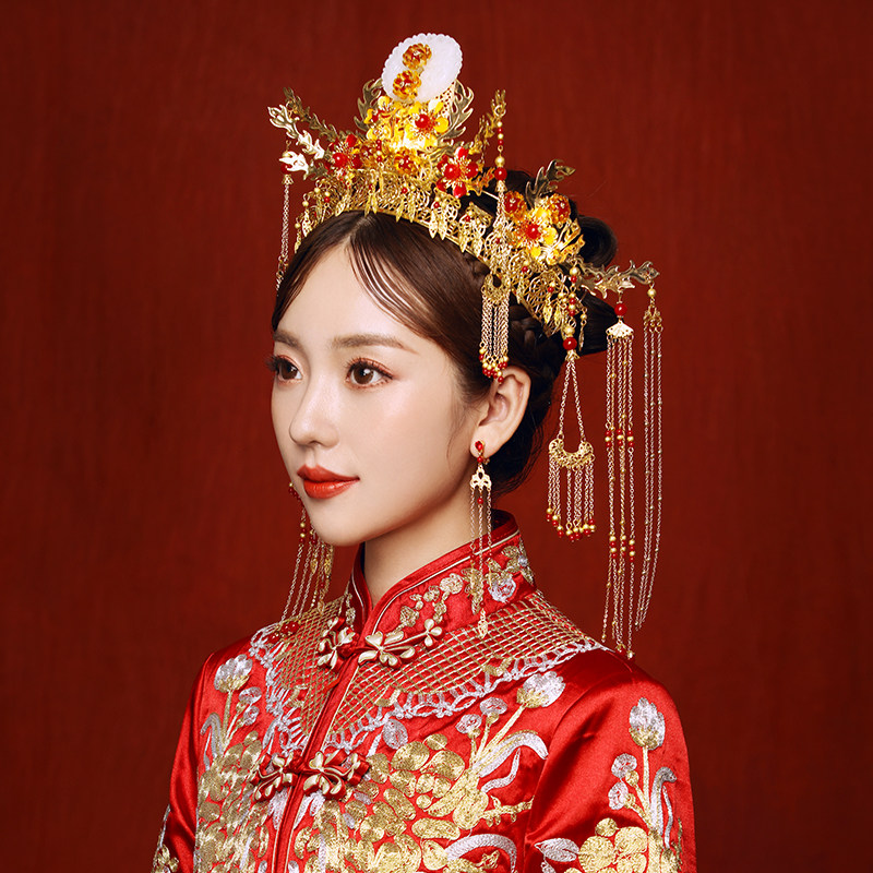 Bridal Show and Accessories For the Face Little Wedding Show and Feng Guan Chinese Style Atmosphere Wedding Ancient Dress Walking and Flowing Su Hair Accessories