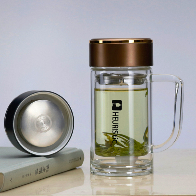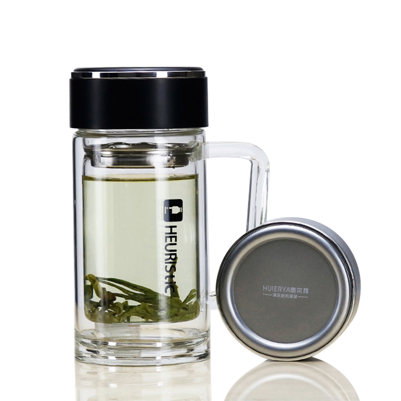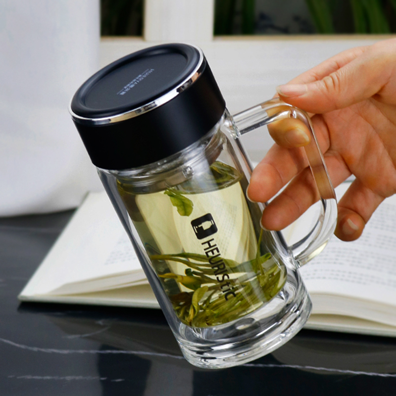 With Handle Glass Cup Double Layer Portable With Lid Filter Handle Heatproof Thickened Business Office Water Cup Men And Women Teacup