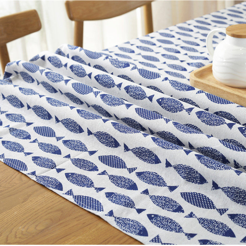 Day-style minimalist blue small fish cotton linen table cloth Classical Tea Daub coffee table Cloth Room Table Cloth Photographic Cloth