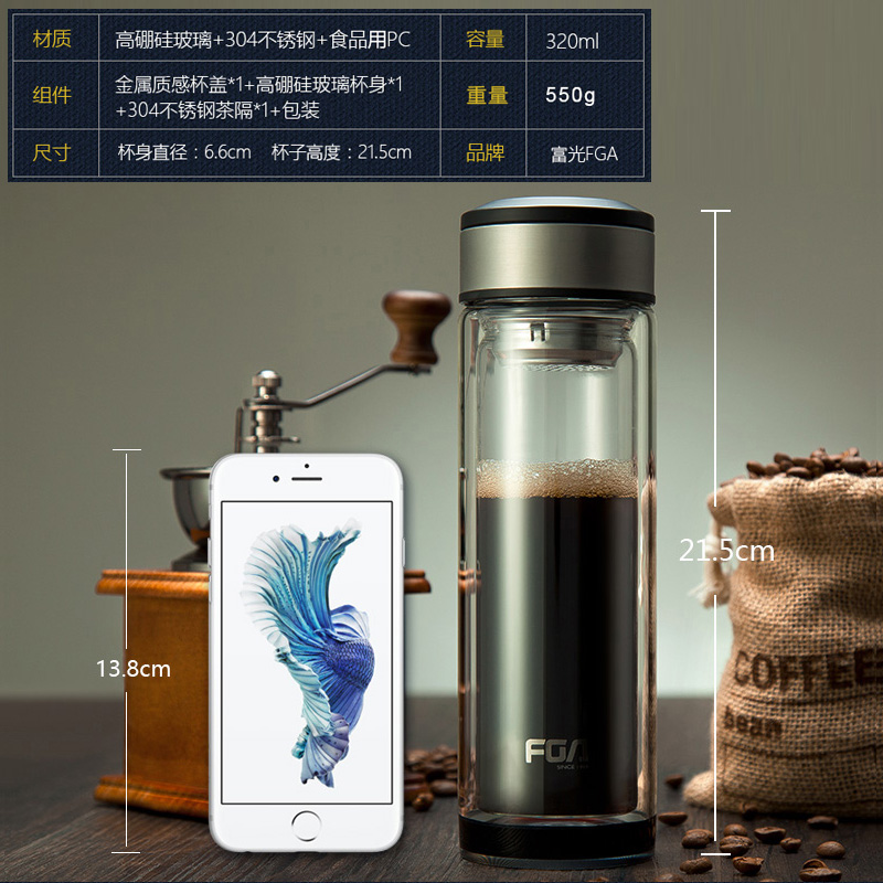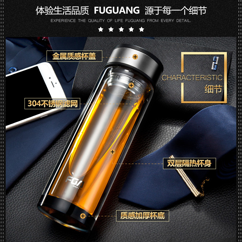 Fuguang round printed cup cup portable cup heat-resistant filtered double-layer men's glass WFB1010-320