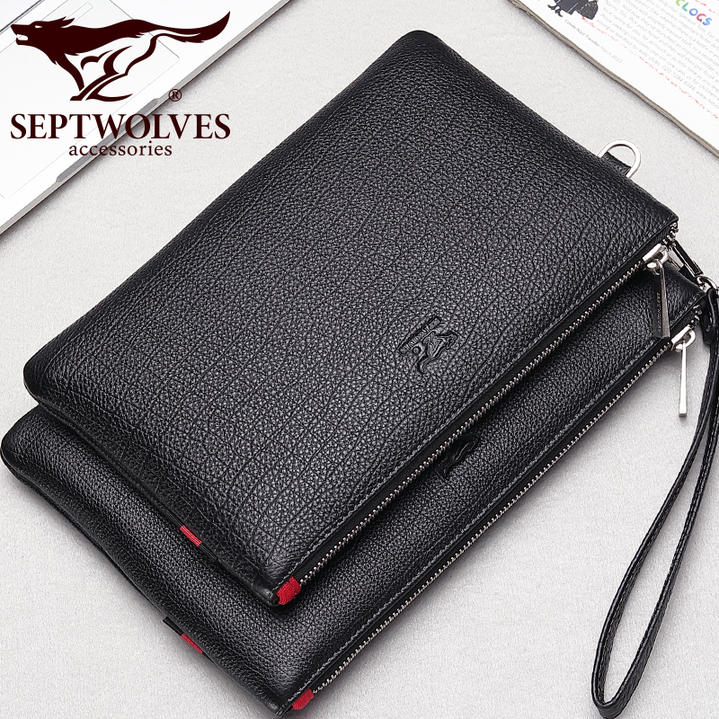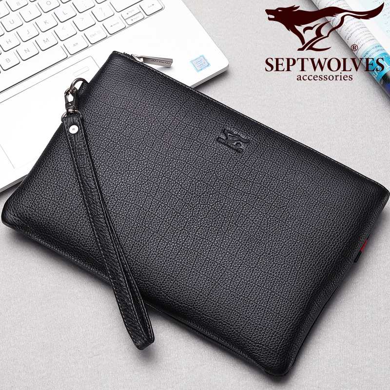 Black black big number E498207-01AF1 black small number E498207-01AF2 curry man handbag 7 wolves clip envelopes wallet mobile phone upscale personality