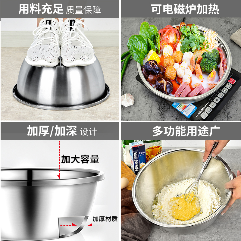 Stainless Steel Bowl 304 House Kitchen Drain Egg and Noodle Tamarind Soup Vegetable Wash Bowl Stainless Steel Bowl Soup Rice