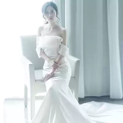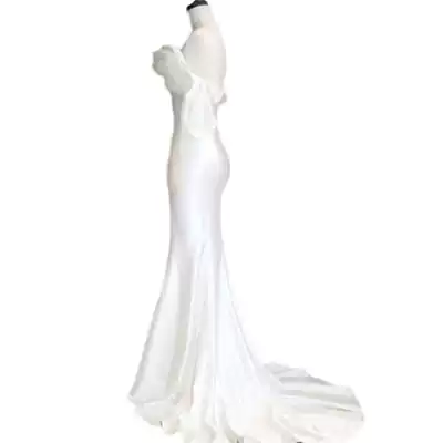 Satin wedding dress 2021 new simple trapy tailing white dress dress women light wedding ceremony