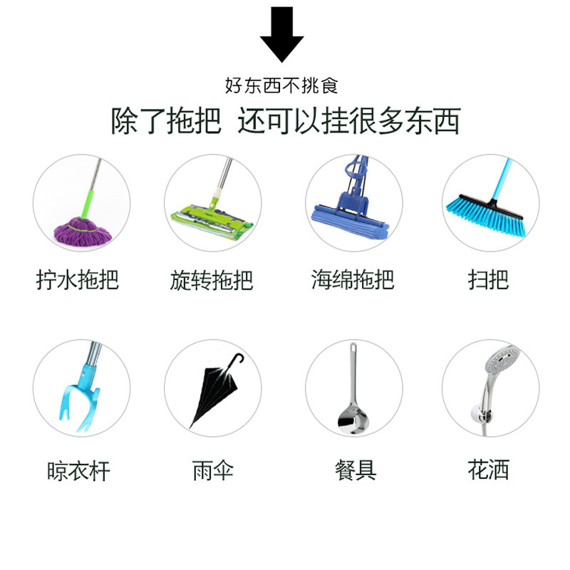 Hanging mop containing deity Makeup Room Wall Fixed Buckle mop hooks free of perforated wall-mounted shelving mop clips