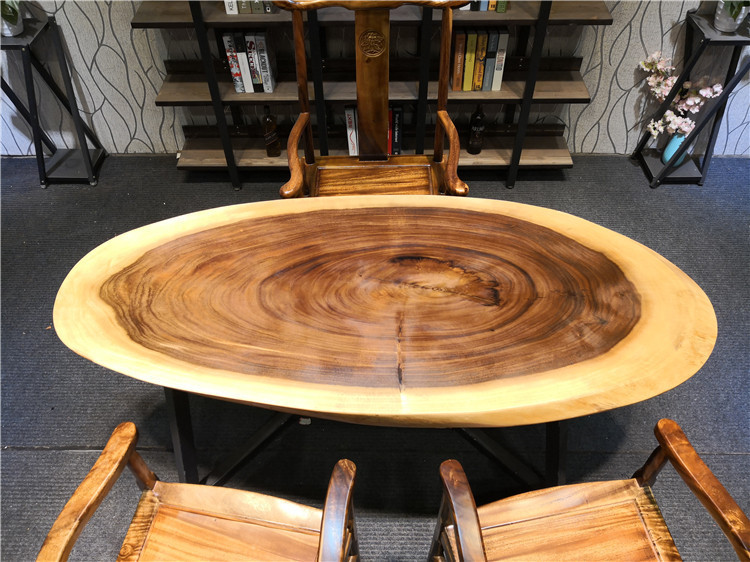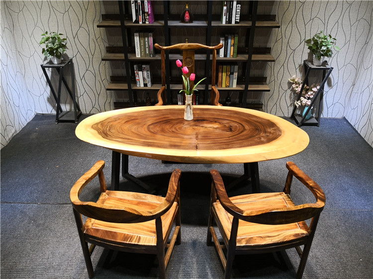 South American walnut oval plate ring round table Solid wood large board office desk Conference table(185*81*6 5)