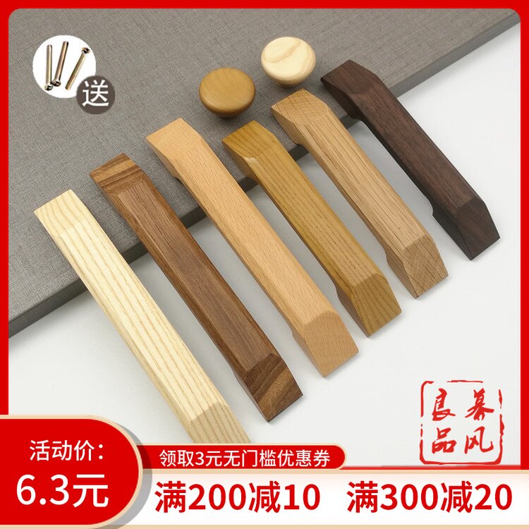 Nordic simple cabinet door solid wood handle log color drawer cabinet wardrobe wood wooden door handle cabinet round