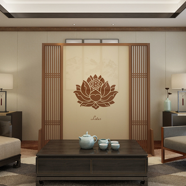 Custom mobile solid wood new Chinese living room compartment screen seat screen fashion porch office hotel lotus