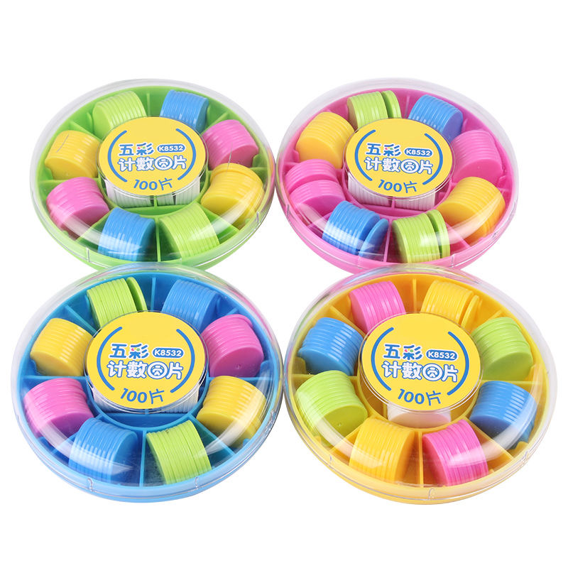 Primary School Math Teaching Aids Plastic Round Sheet 100 Pieces Kindergarten Count of Wafer Teaching Aids Number of pieces boxed wafer