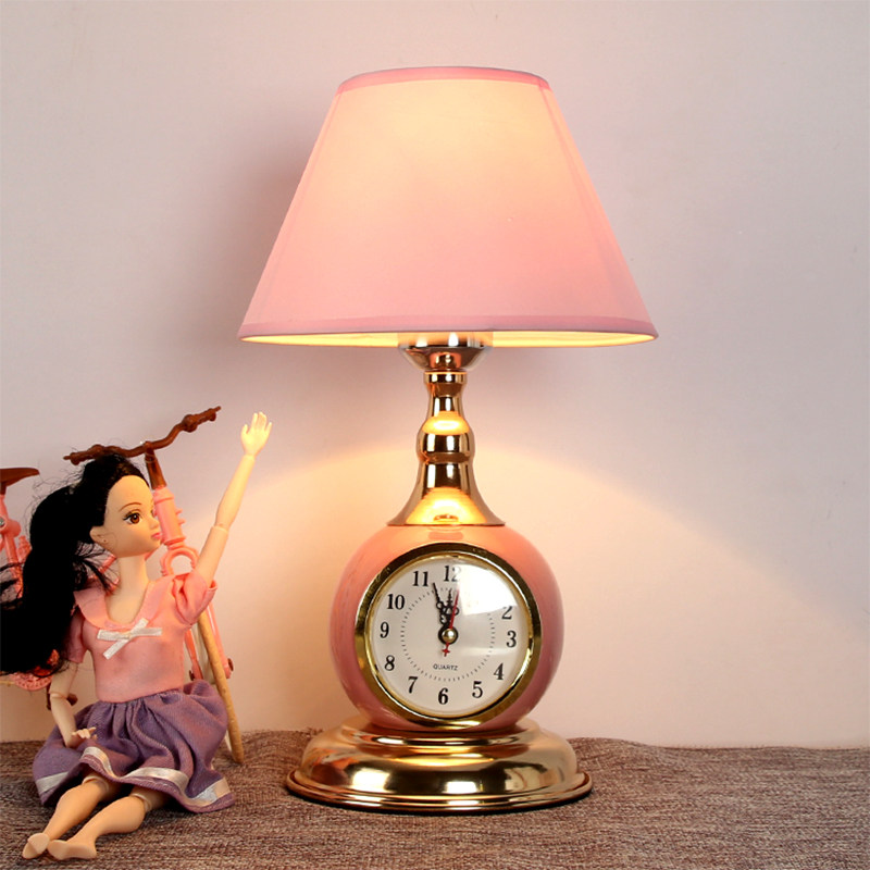 European post-modern warm bedroom bedside lamp Nordic personality study pink princess dimming fabric clock table lamp