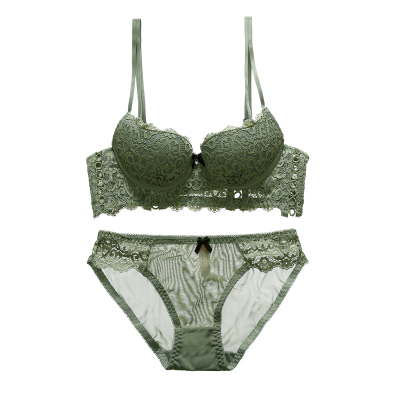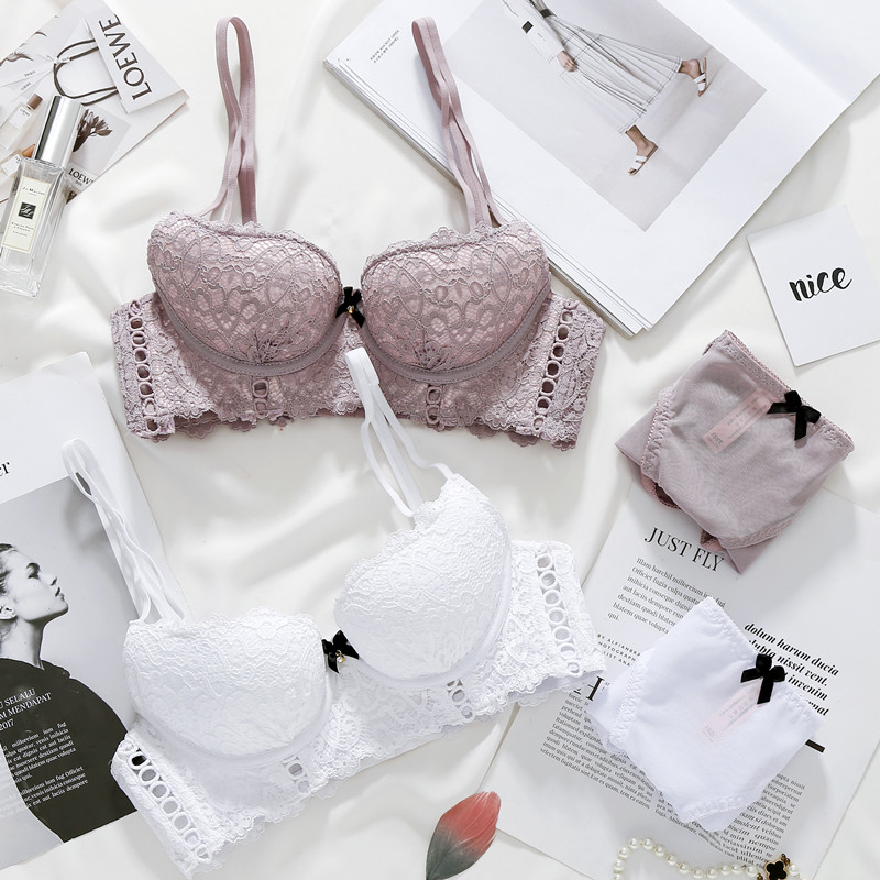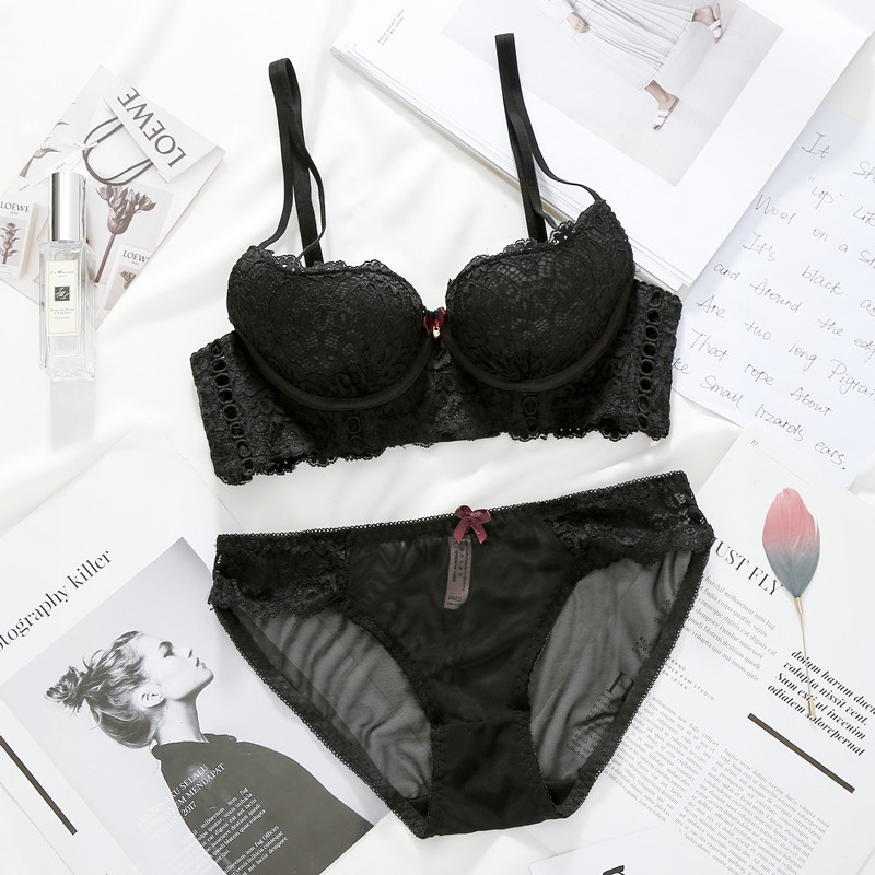 Sexy Lace Lingerie Women Suit Poly side collection Breast Anti Drooping Thin Cups Bra Half Cup on Small Bra
