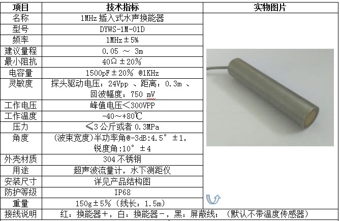 Ultrasonic flow meter monitor transducers underwater ranging transducer monitor DYWS-1M-01D range 3 m