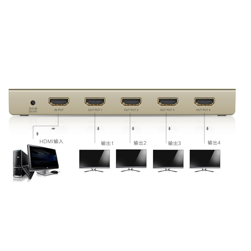 Green union HDMI splitter 1 in 4 out computer video 4K2K crossover switching high-quality TV one point four extension cable