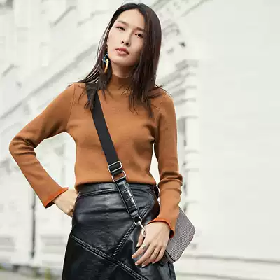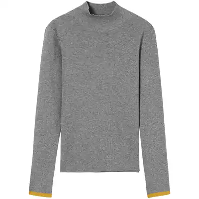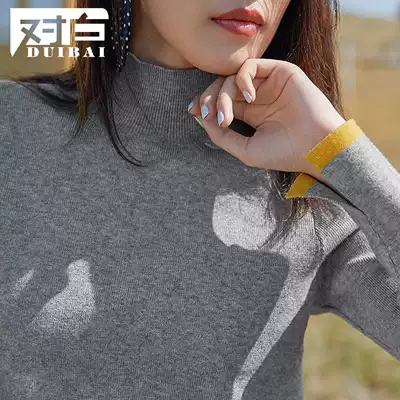 (Cuckoo same) white color cuffs half turtleneck knitted sweater women 2021 Winter slit top D2