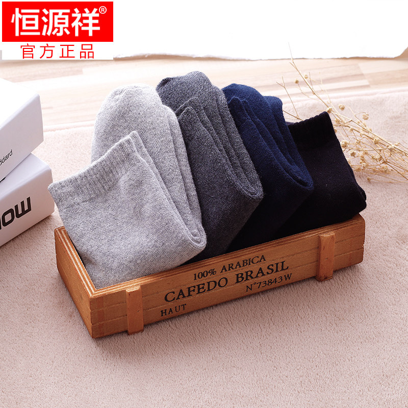 Hengyuanxiang towel socks thickened plus velvet floor socks men's mid-tube socks pure cotton terry warm stockings autumn and winter