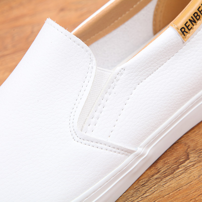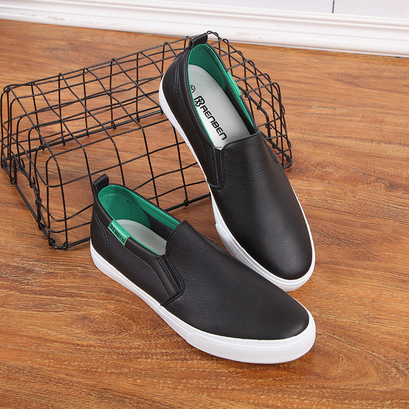 Human-based lazy men's shoes 2022 new student leather disposable shoes black low-top breathable slip-on loafers