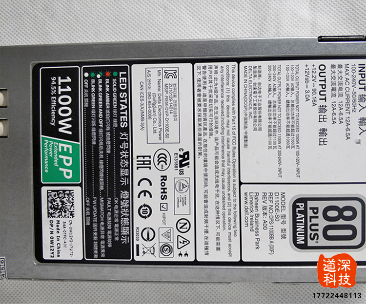 DELL R530 R530 R630 R730XD R730XD 1100W power supply D11100E-S0 0W12Y2